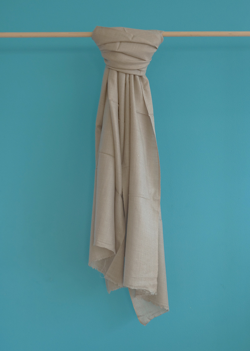 CHÂLE EN PASHMINA TISSÉ À LA MAIN À KULLU (RÉGION HIMACHAL PRADESH). LE PASHMINA, DOUX, LÉGER ET RÉCHAUFFANT FAIT PARTI D’UNE DES VARIÉTÉS DU CASHMIRE. SA DIFFÉRENCE NOTABLE EST LE DIAMÈTRE DES POILS DES CHÈVRES QUI EST ENCORE PLUS FIN QUE CELUI DU CASHMIRE. DOUCEUR ET CHALEUR GARANTIE.